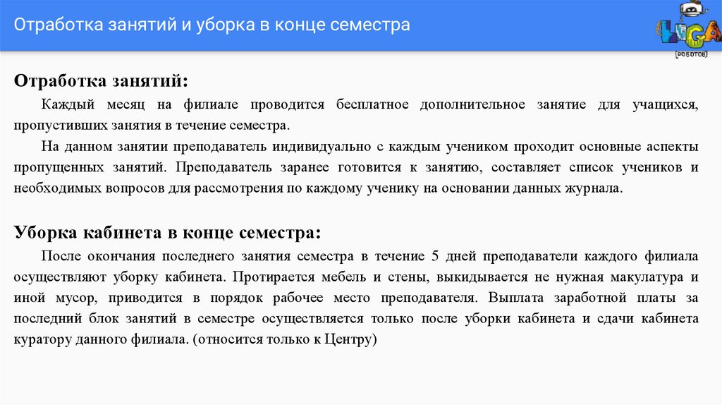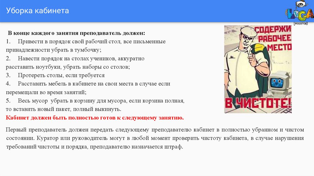 иной мусор, приводится в порядок рабочее место преподавателя. Выплата заработной платы за