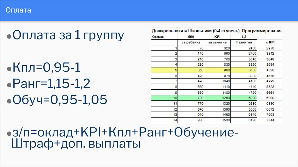 ●з/п=оклад+KPI+Кпл+Ранг+Обучение-
