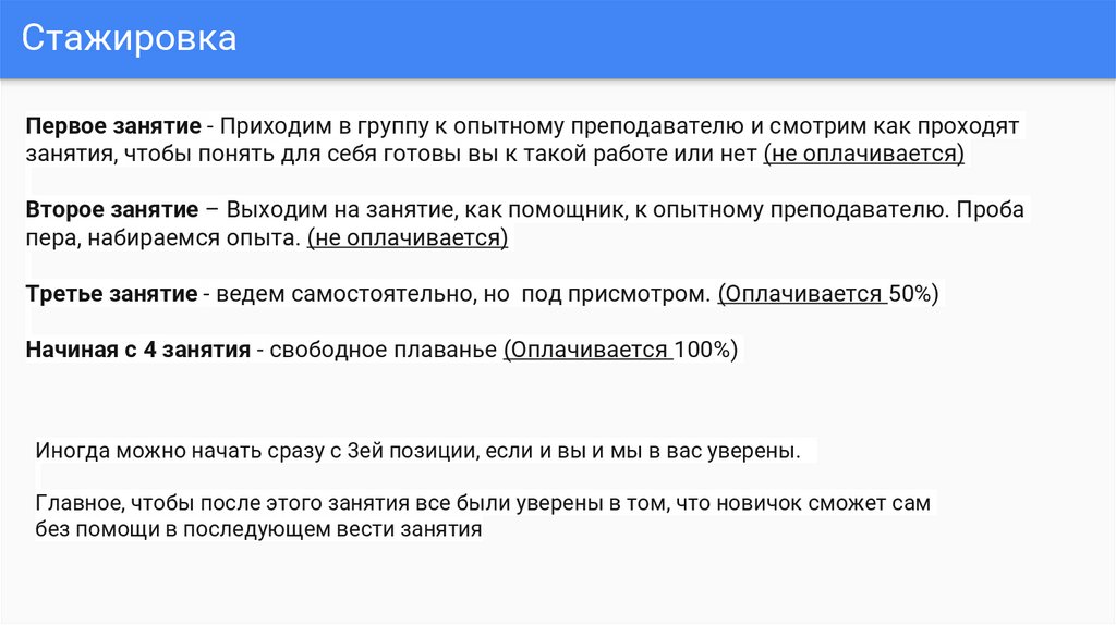 СтажировкаПервое занятие - Приходим в группу к опытному преподавателю и смотрим как проходят