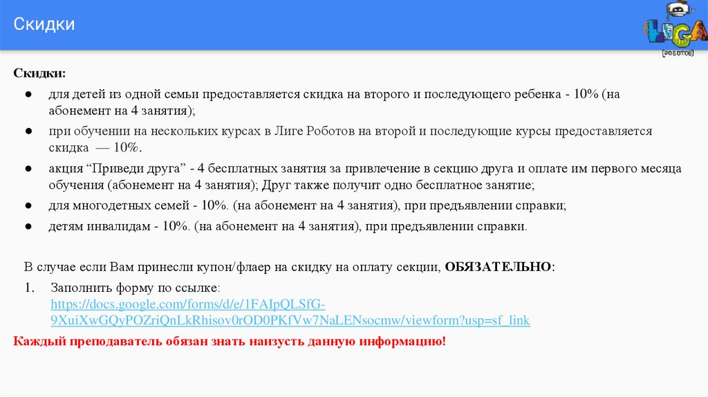 ● при обучении на нескольких курсах в Лиге Роботов на второй и последующие курсы предоставляется