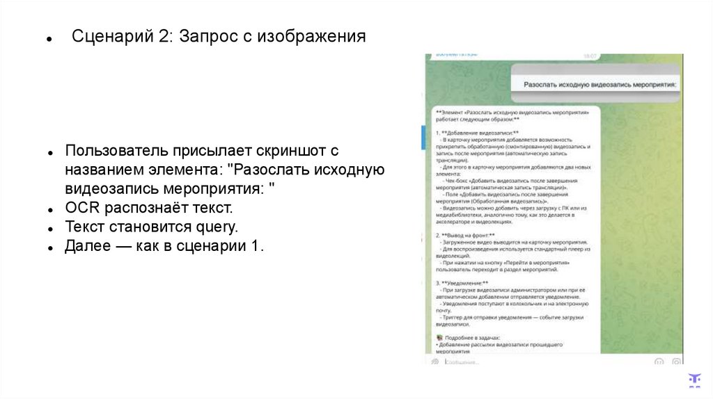 Сценарий 2: Запрос с изображенияПользователь присылает скриншот с