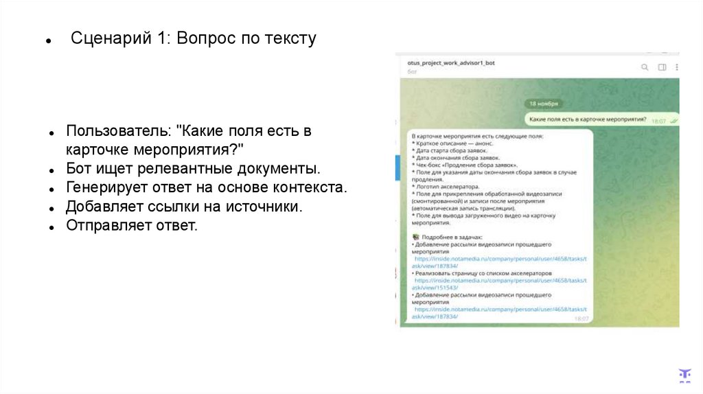 Сценарий 1: Вопрос по текстуПользователь: "Какие поля есть в