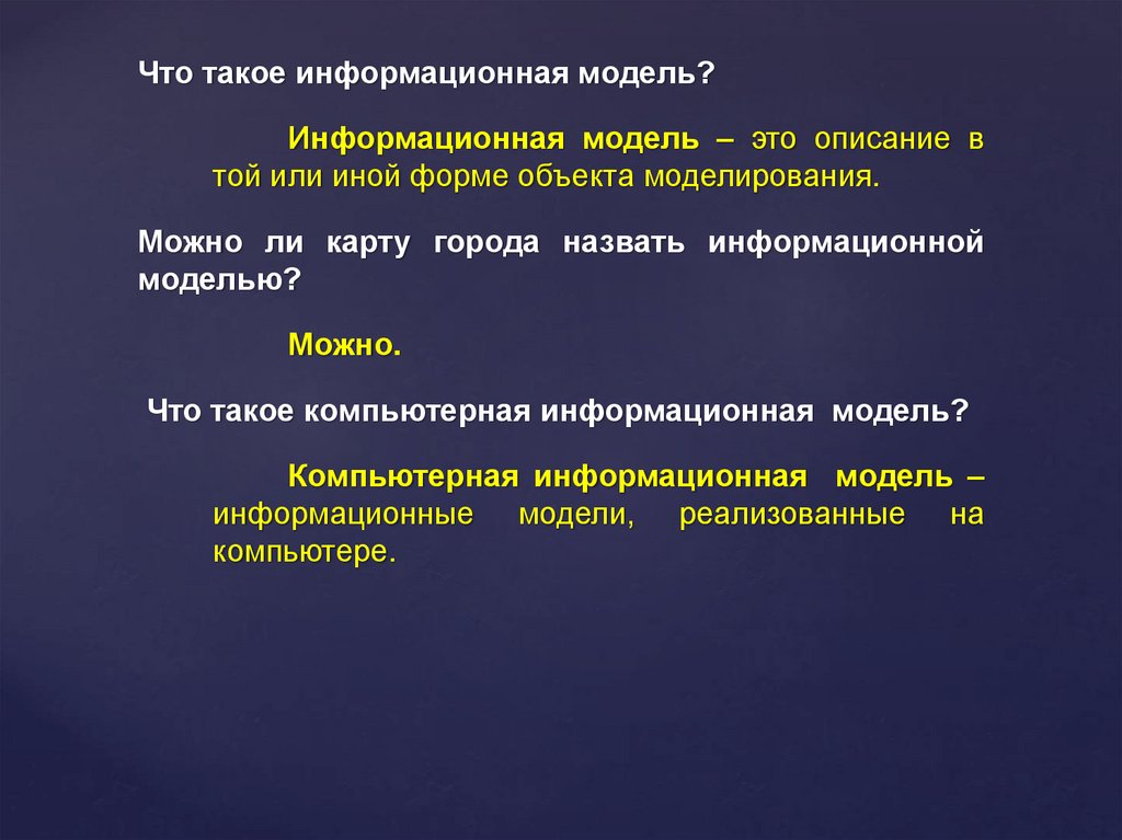 Что такое информационная модель?Информационная модель – это описание в