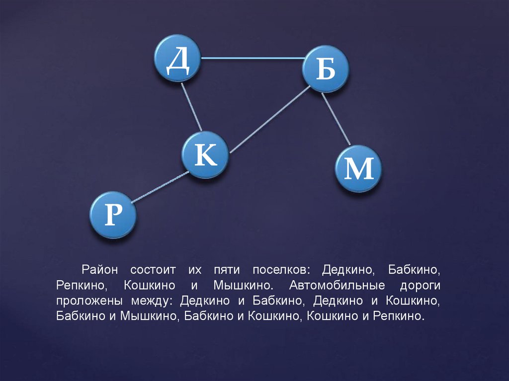 Бабкино и Мышкино, Бабкино и Кошкино, Кошкино и Репкино.