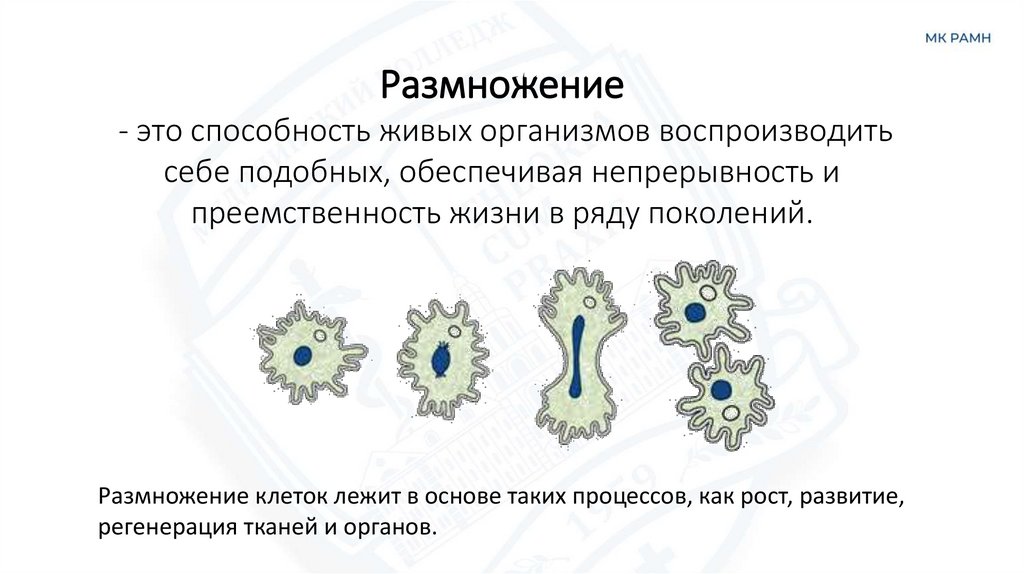 Размножение клеток лежит в основе таких процессов, как рост, развитие,