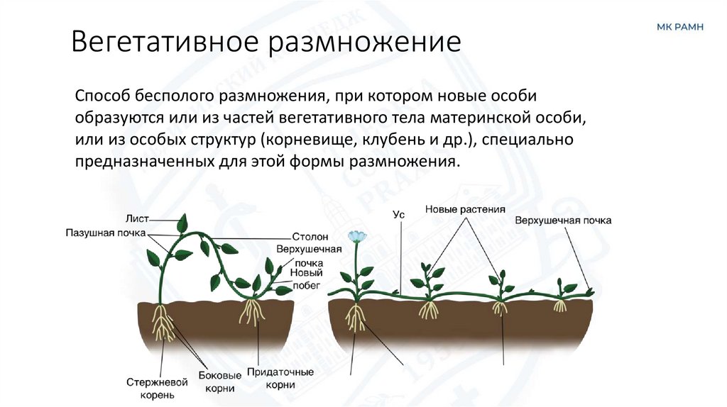 Вегетативное размножениеСпособ бесполого размножения, при котором новые особи