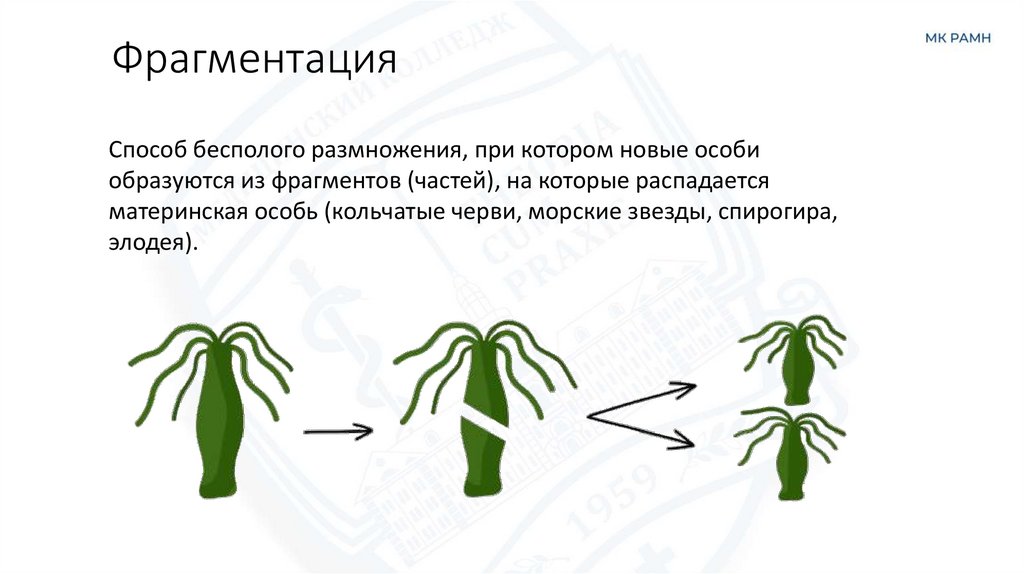 ФрагментацияСпособ бесполого размножения, при котором новые особи