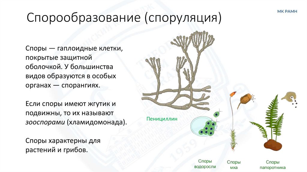 Спорообразование (споруляция)Споры — гаплоидные клетки,