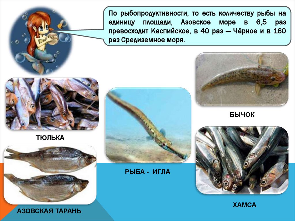 По рыбопродуктивности, то есть количеству рыбы наединицу площади, Азовское море в 6,5 раз