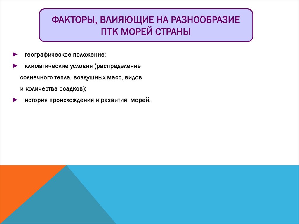ФАКТОРЫ, ВЛИЯЮЩИЕ НА РАЗНООБРАЗИЕПТК МОРЕЙ СТРАНЫ