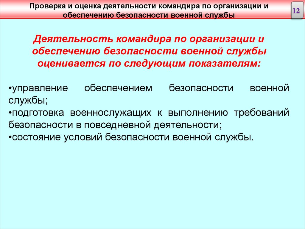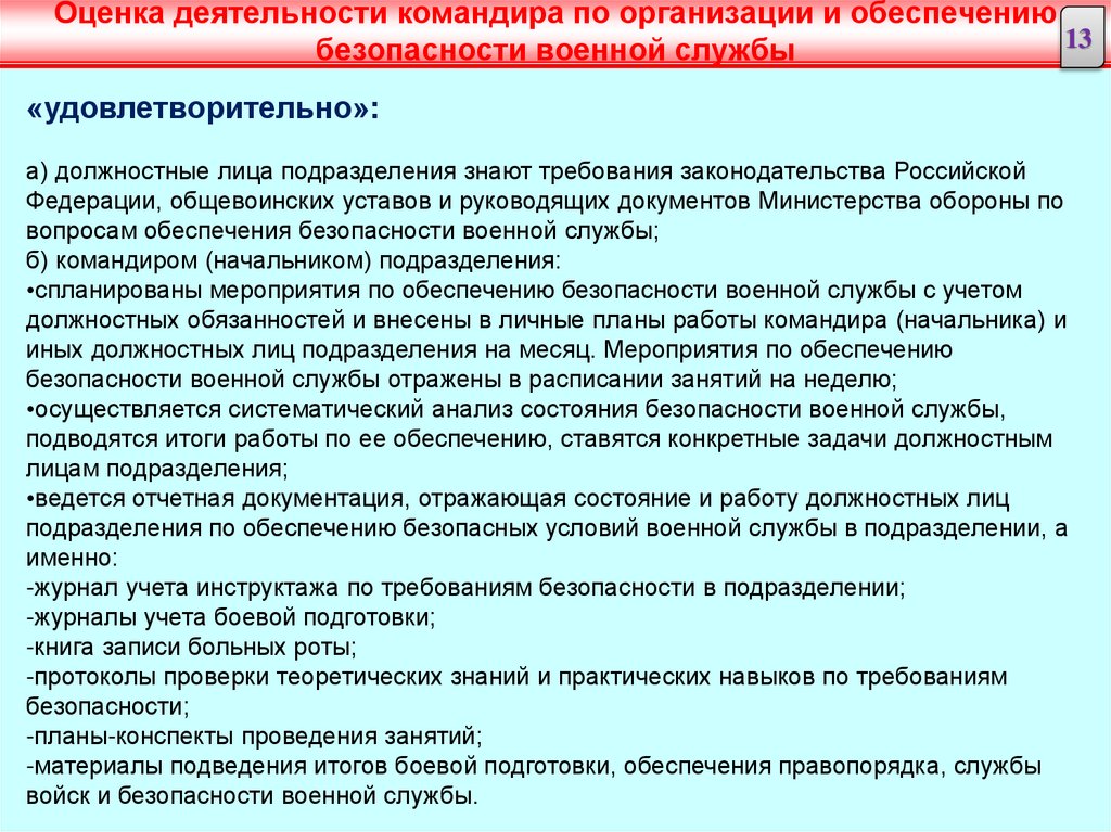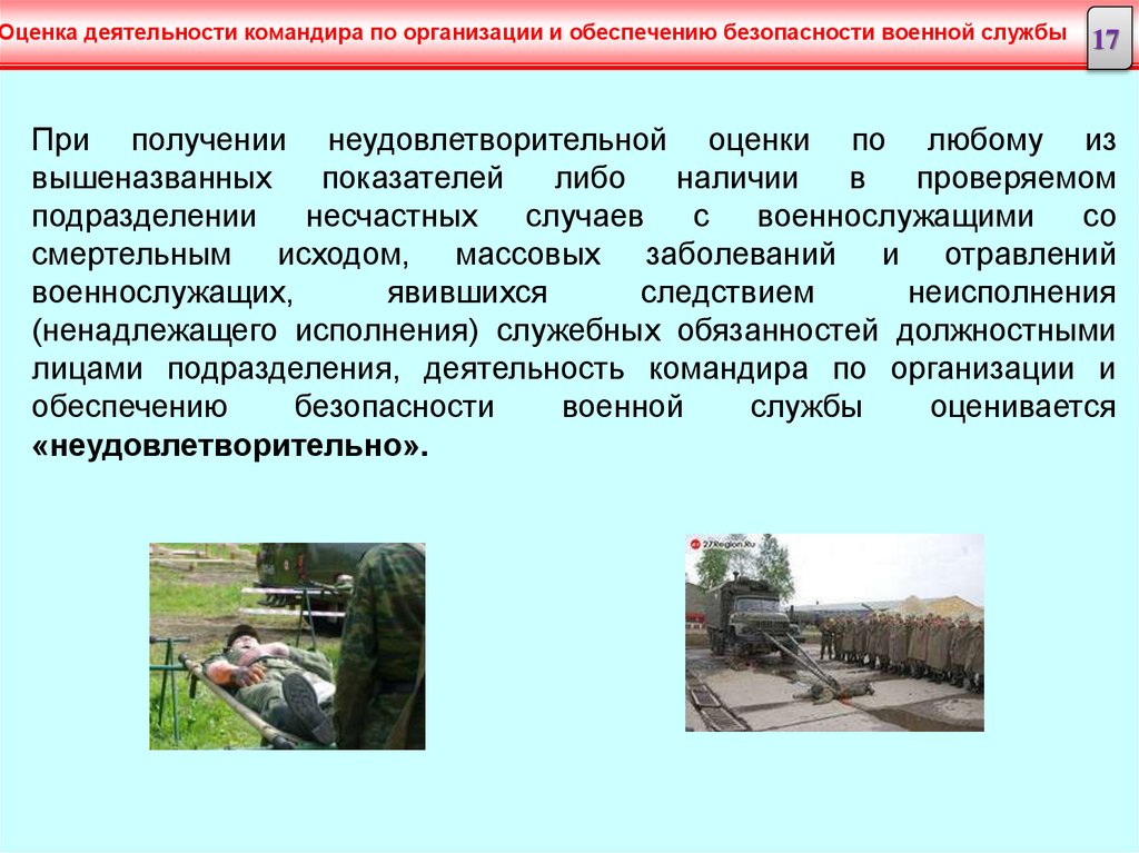 Оценка деятельности командира по организации и обеспечению безопасности военной службы17