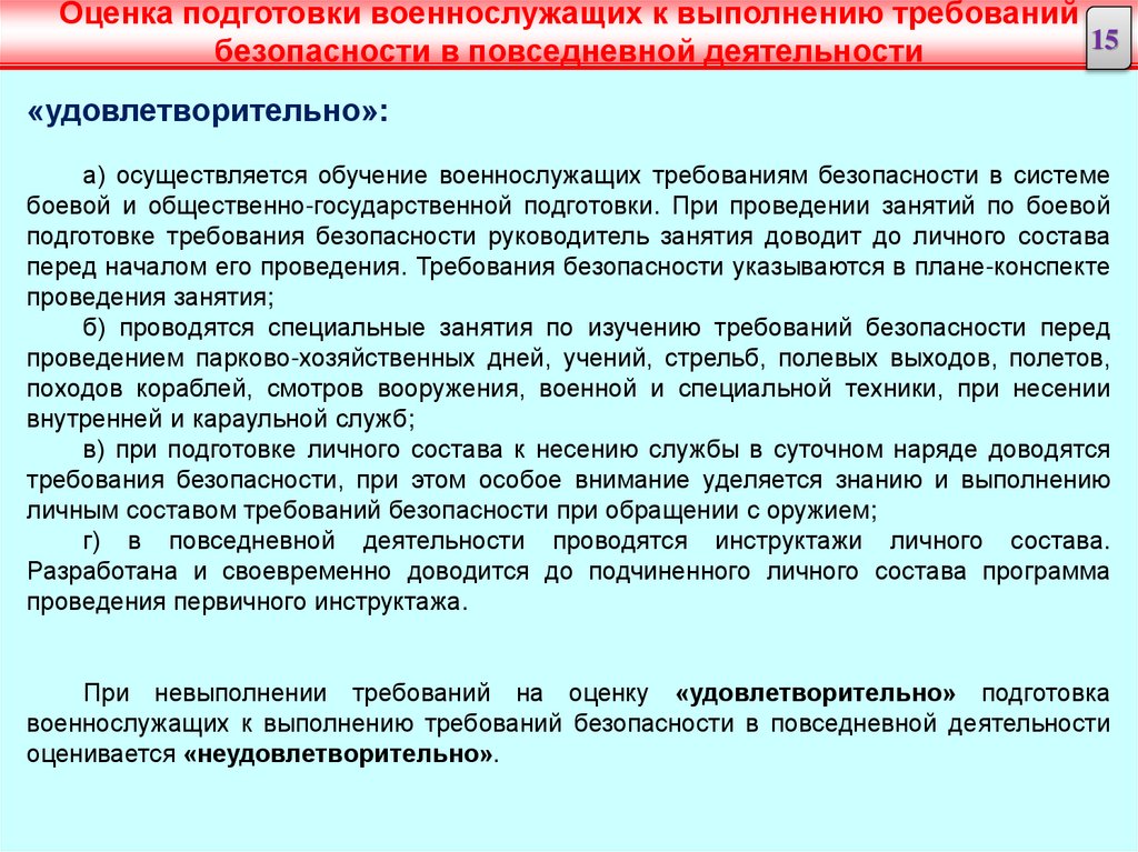 военнослужащих к выполнению требований безопасности в повседневной деятельности