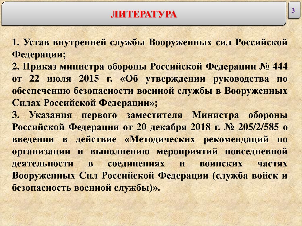 ЛИТЕРАТУРА1. Устав внутренней службы Вооруженных сил Российской
