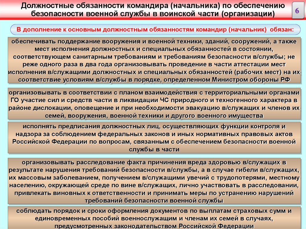 Должностные обязанности командира (начальника) по обеспечениюбезопасности военной службы в воинской части (организации)