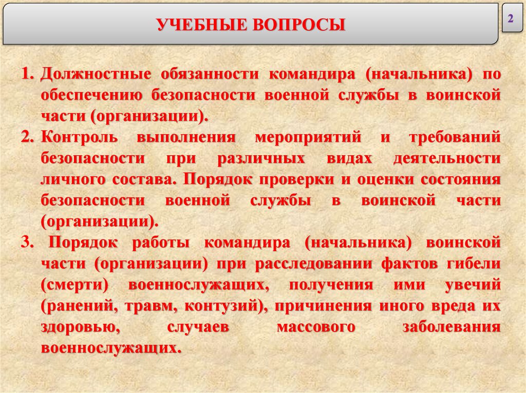 УЧЕБНЫЕ ВОПРОСЫ1. Должностные обязанности командира (начальника) по