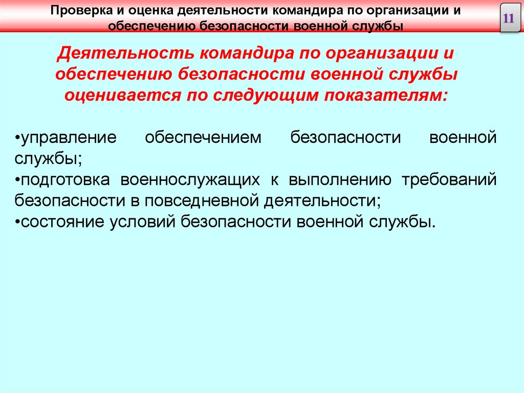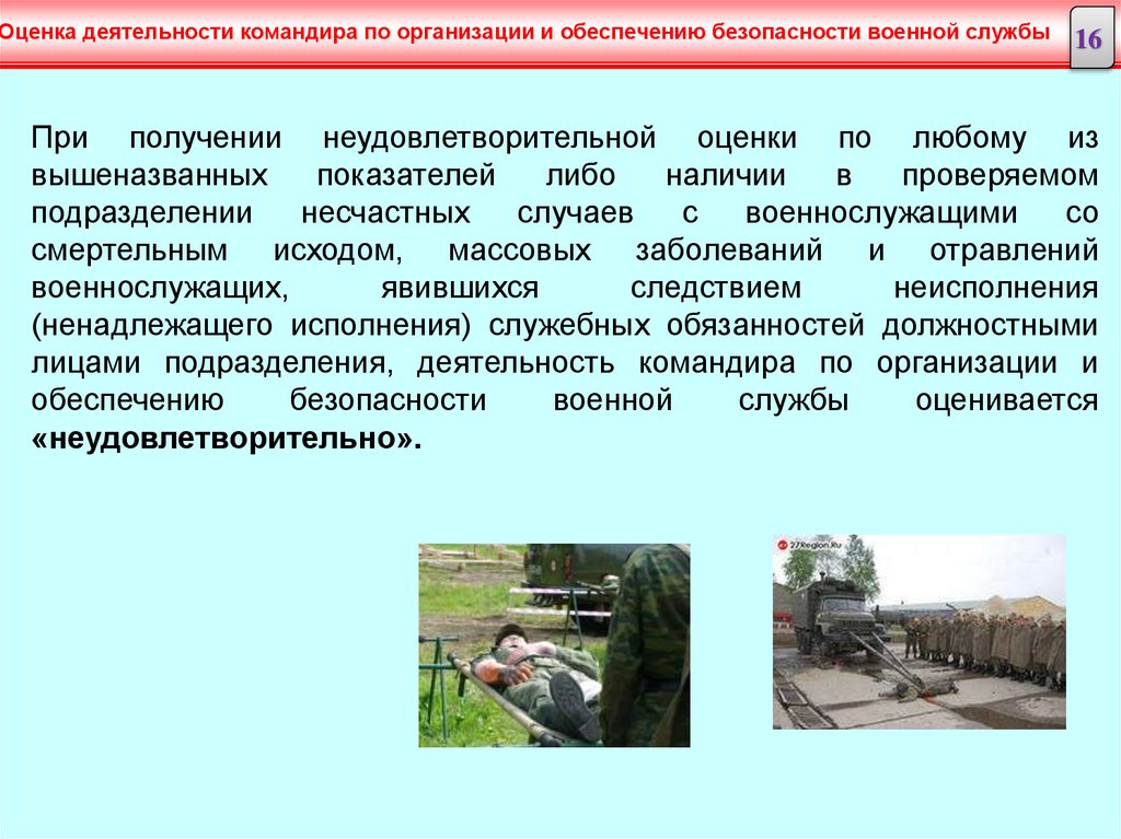 Оценка деятельности командира по организации и обеспечению безопасности военной службы16
