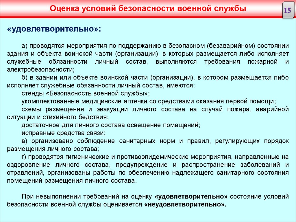 Оценка условий безопасности военной службы15
