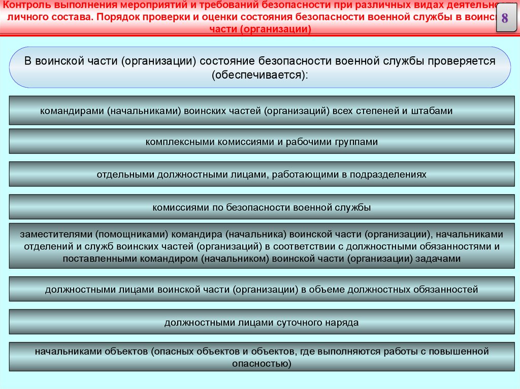 осуществлять постоянный контроль за выполнением требований безопасности военной