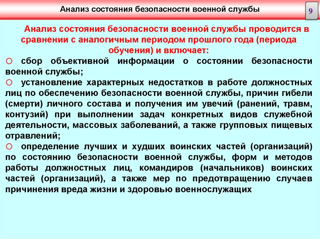 •осуществляется систематический анализ состояния безопасности военной службы,