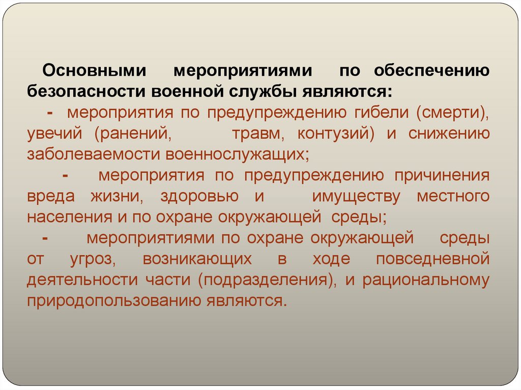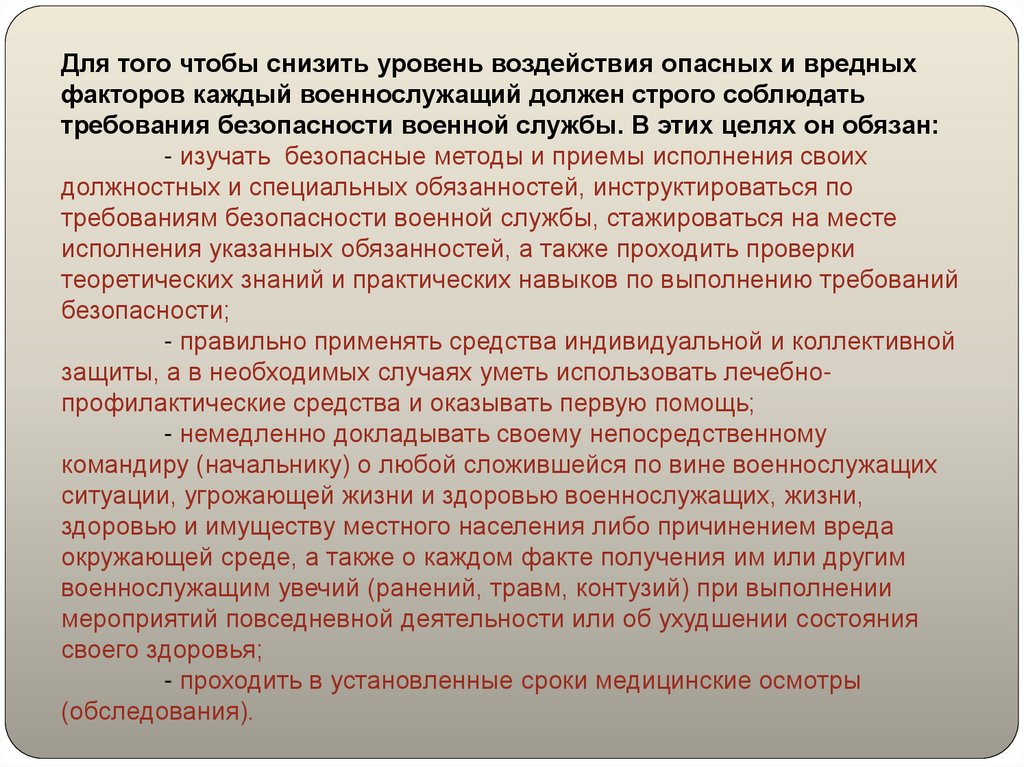 безопасности различных видов деятельности военнослужащих, эксплуатации
