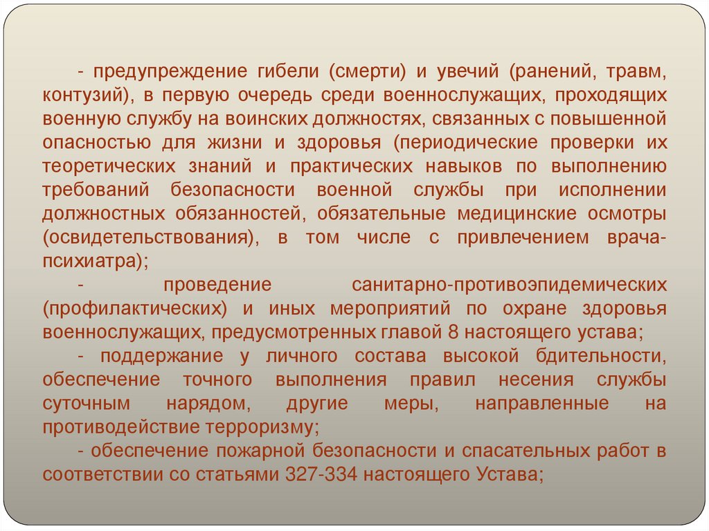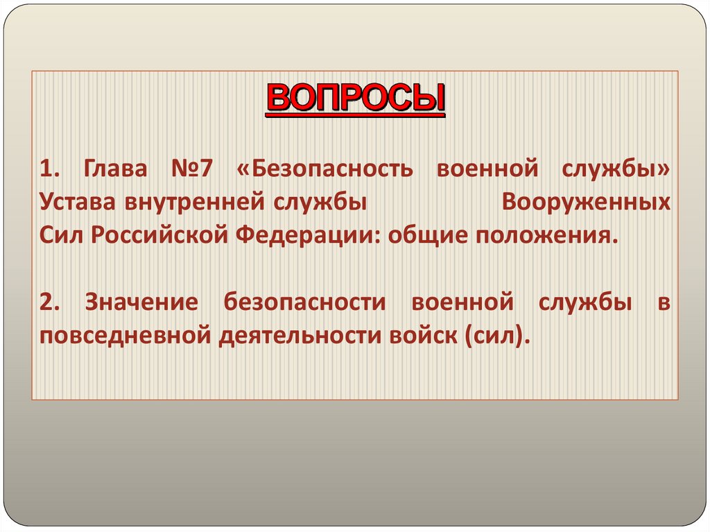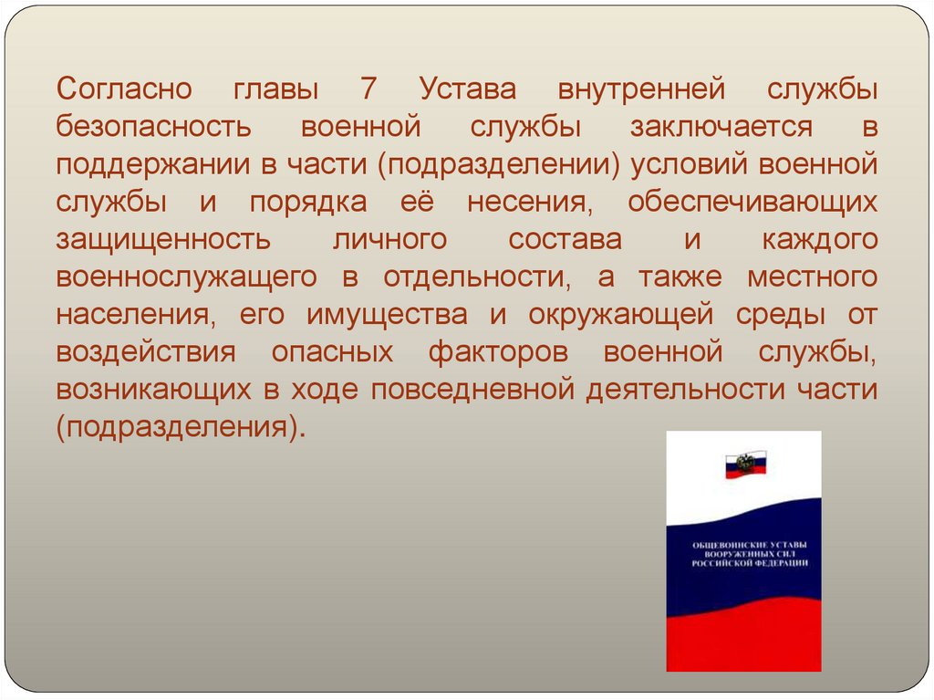 1. Глава №7 «Безопасность военной службы»Устава внутренней службы