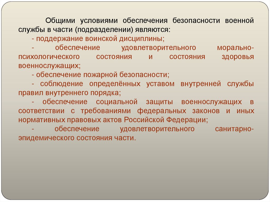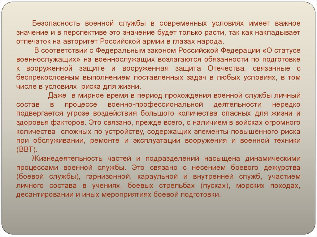 Безопасность военной службы в современных условиях имеет важноезначение и в перспективе это значение будет только расти, так как накладывает
