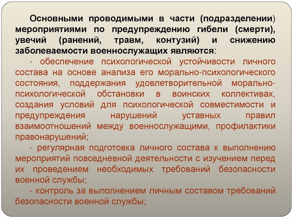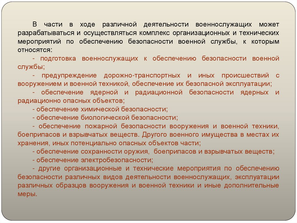 В части в ходе различной деятельности военнослужащих можетразрабатываться и осуществляться комплекс организационных и технических
