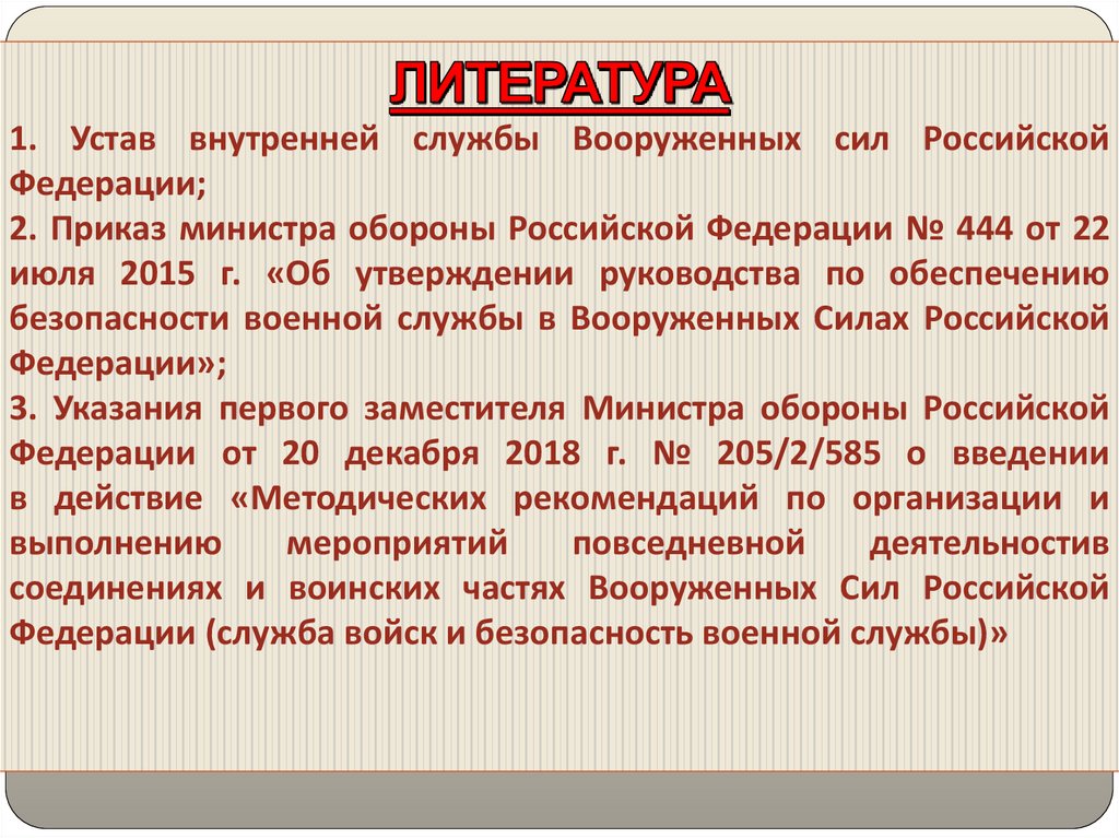 1. Устав внутренней службы Вооруженных сил РоссийскойФедерации;