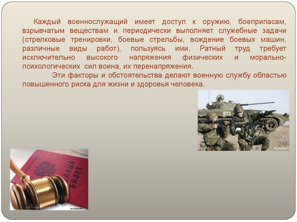 Каждый военнослужащий имеет доступ к оружию, боеприпасам,взрывчатым веществам и периодически выполняет служебные задачи
