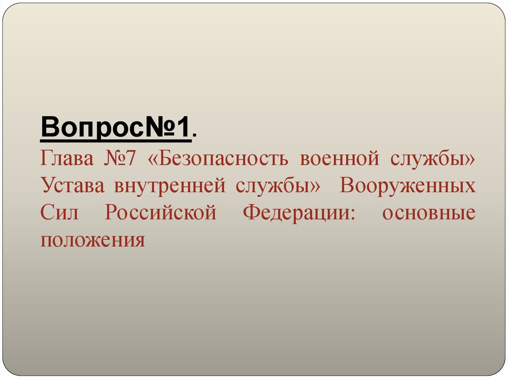 Вопрос№1.Глава №7 «Безопасность военной службы»