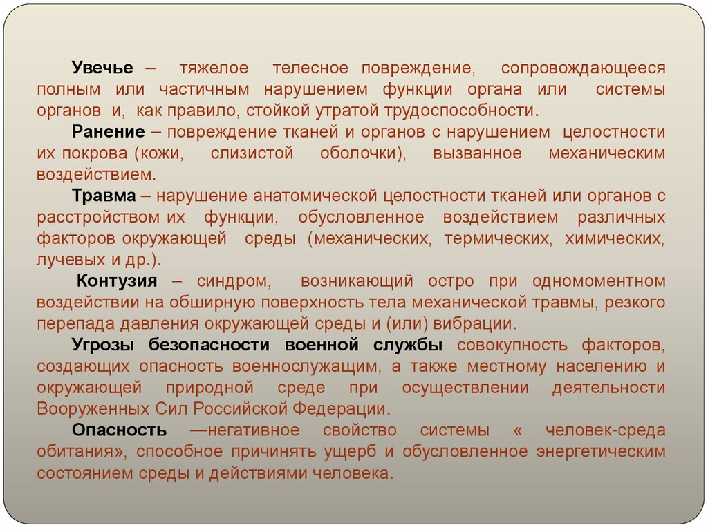 Опасности различны по своему содержанию и остроте в зависимостиот условий, в которых осуществляется военная служба. Опасность
