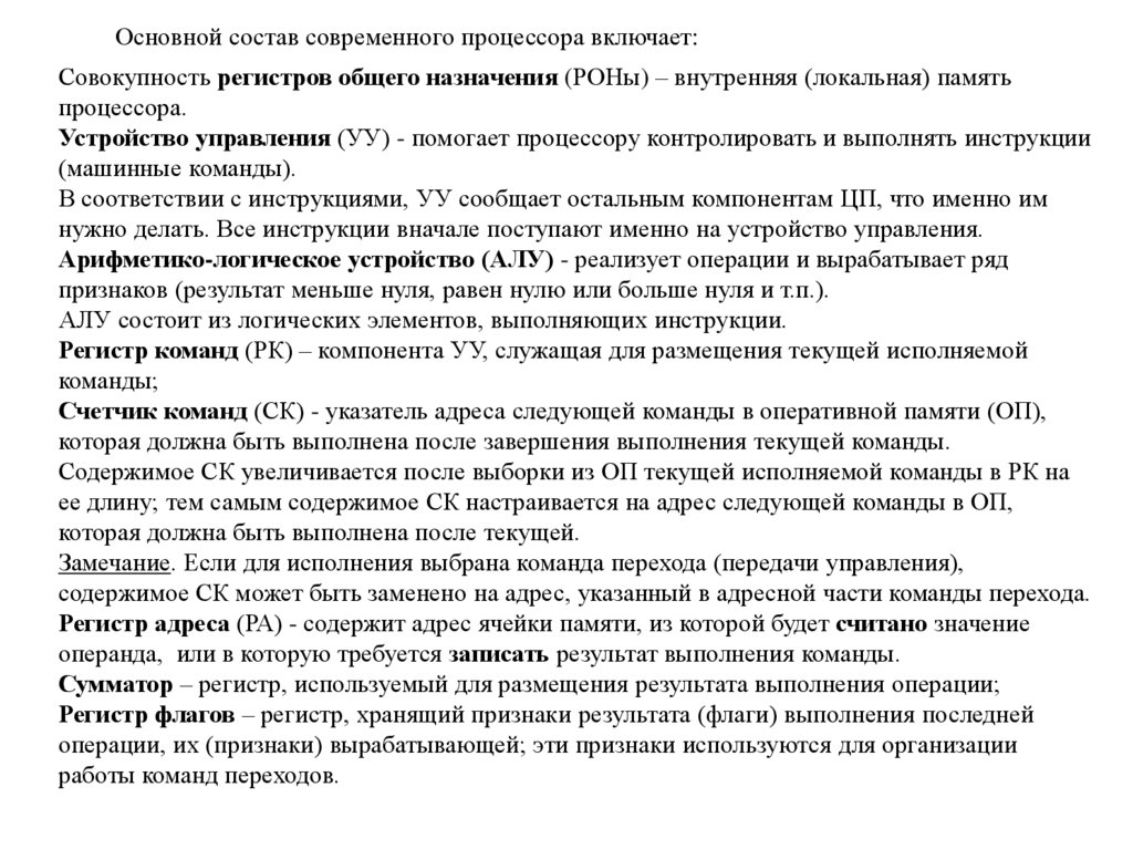 Совокупность РОНов, образующих локальную память процессора, предназначена для
