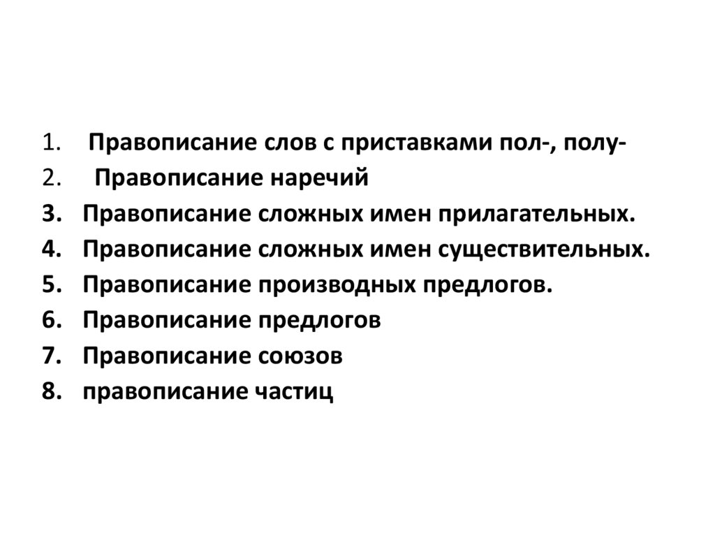 Правописание слов с приставками пол-, полуПравописание наречий