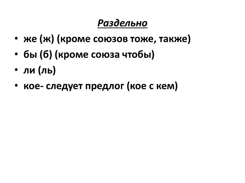 6. Всегда раздельно пишутся следующие предлоги: