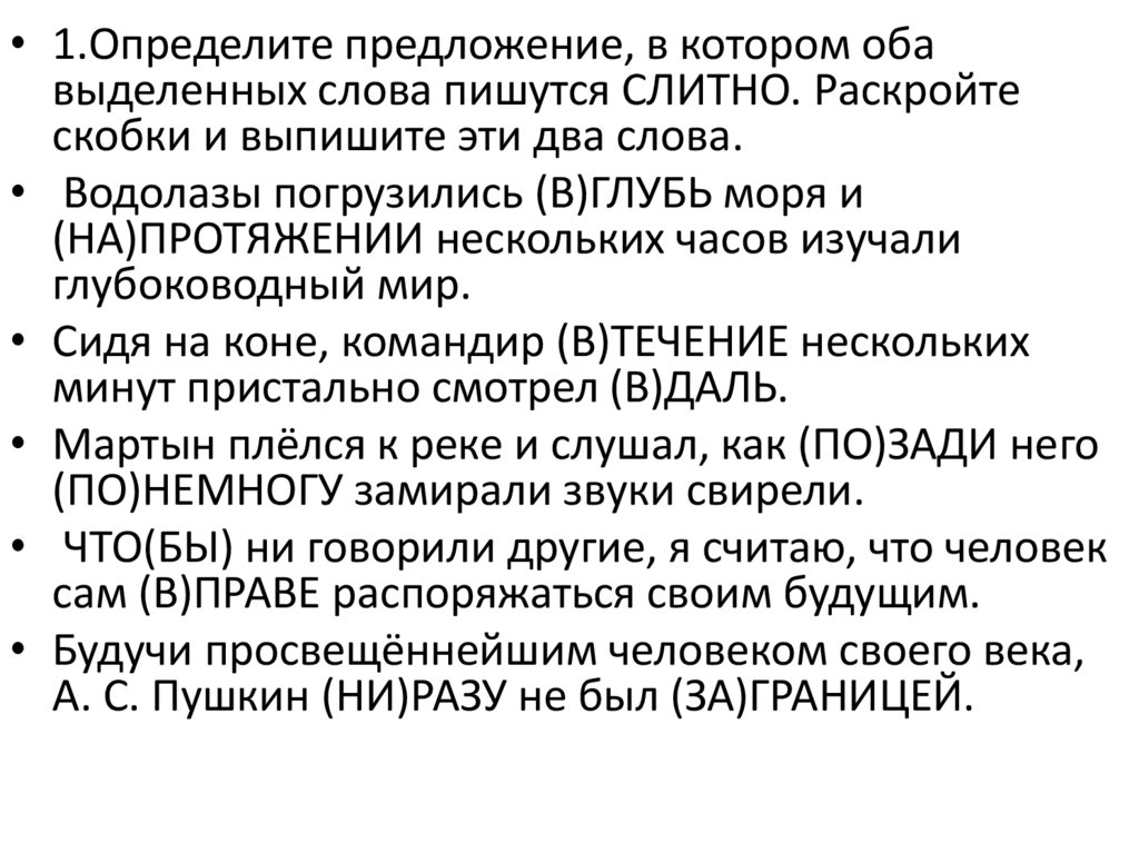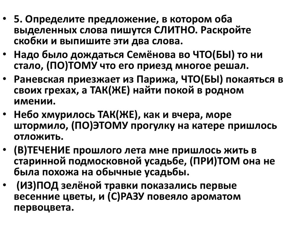 • 5. Определите предложение, в котором обавыделенных слова пишутся СЛИТНО. Раскройте