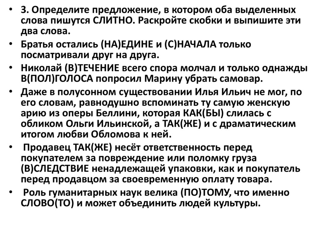 • 3. Определите предложение, в котором оба выделенныхслова пишутся СЛИТНО. Раскройте скобки и выпишите эти