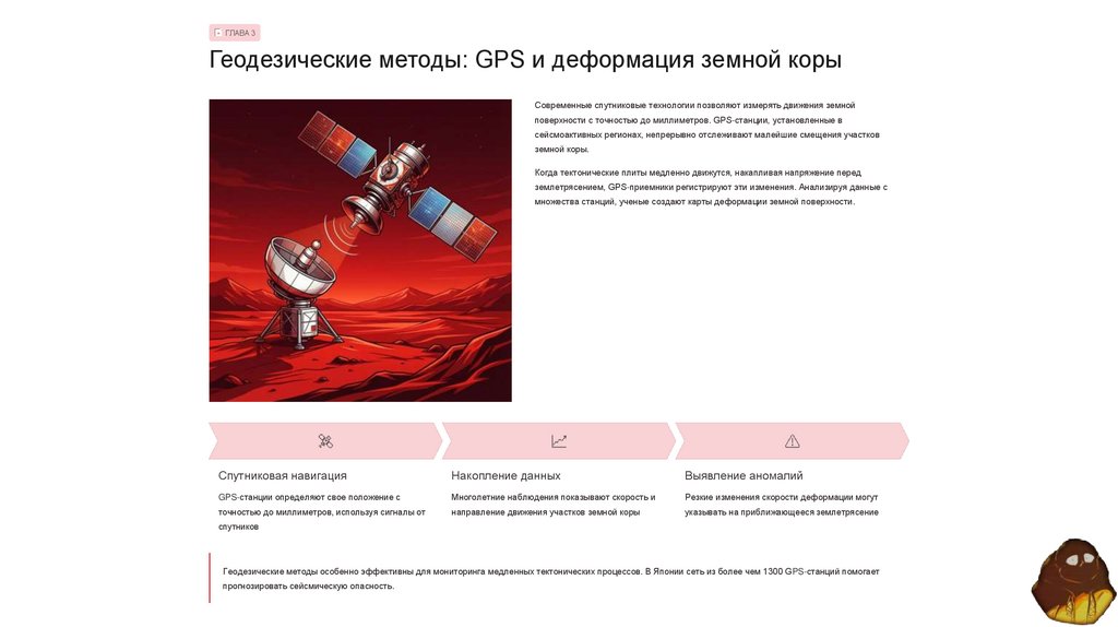 землетрясением, GPS-приемники регистрируют эти изменения. Анализируя данные с