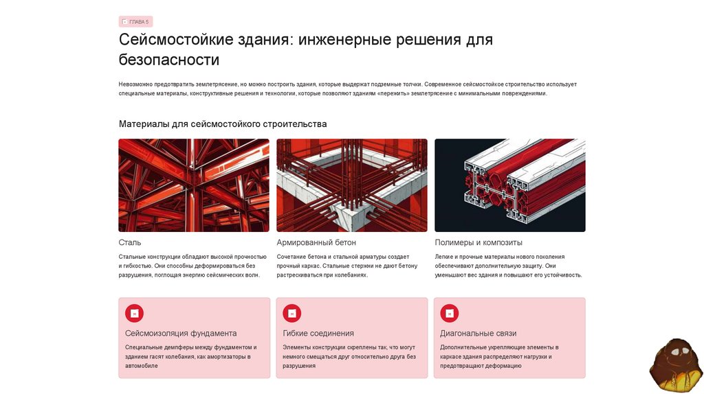 специальные материалы, конструктивные решения и технологии, которые позволяют зданиям «пережить» землетрясение с минимальными повреждениями.