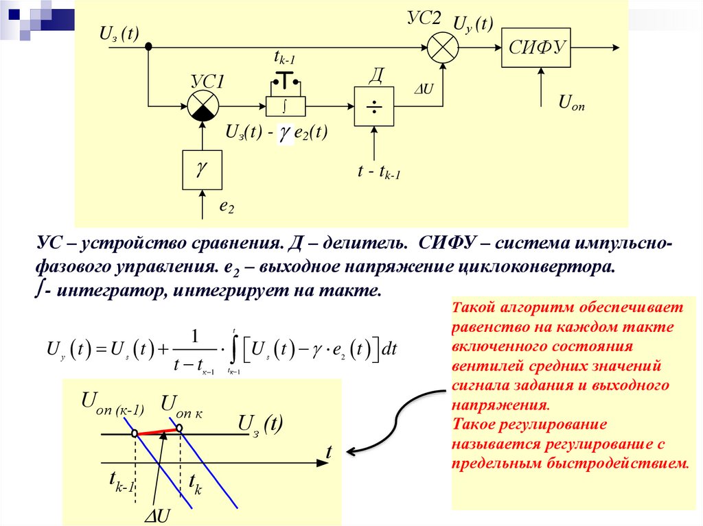 УС – устройство сравнения. Д – делитель. СИФУ – система импульснофазового управления. e2 – выходное напряжение циклоконвертора.