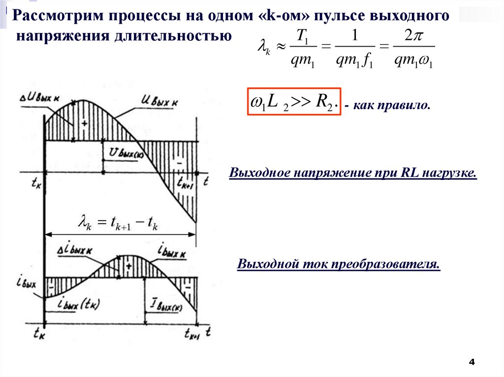 Выходные напряжение и ток на k-м такте можно представить в виде: