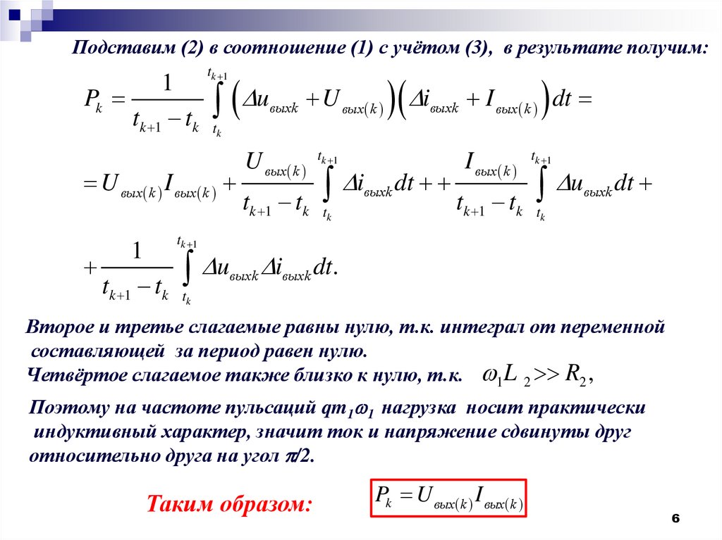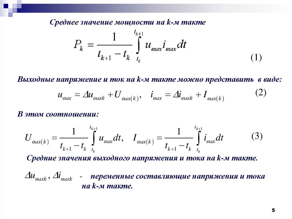 Средние значения выходного напряжения и тока на k-м такте.
