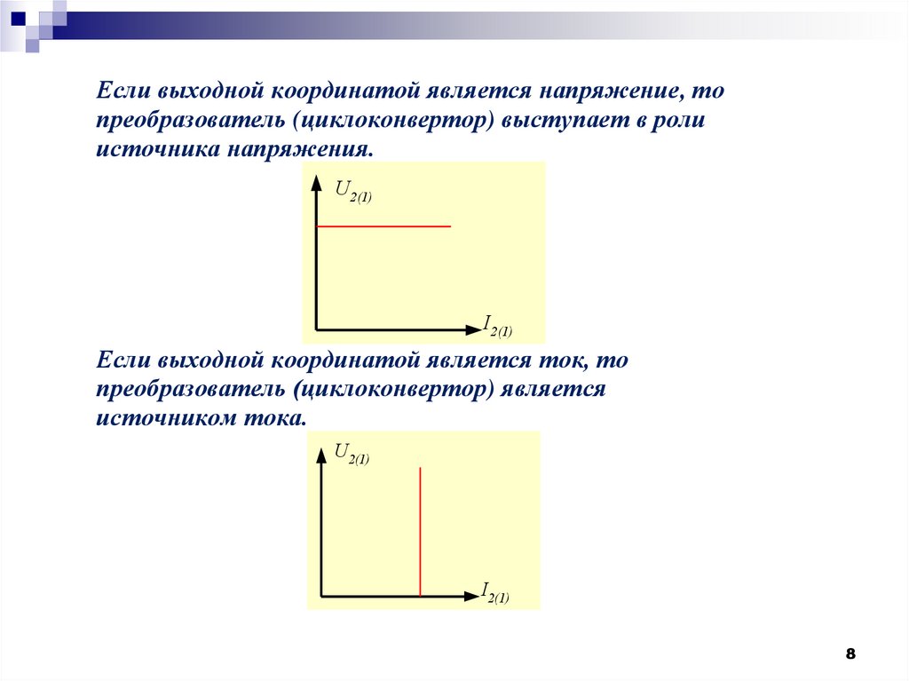 Если выходной координатой является напряжение, топреобразователь (циклоконвертор) выступает в роли