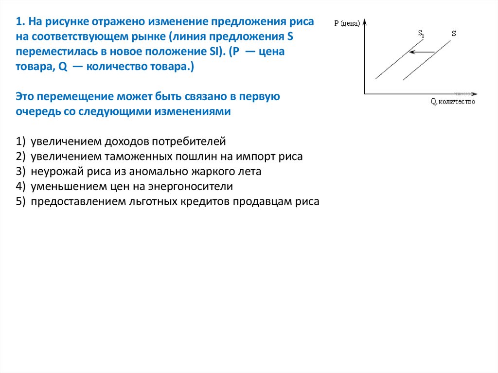 1. На рисунке отражено изменение предложения рисана соответствующем рынке (линия предложения S