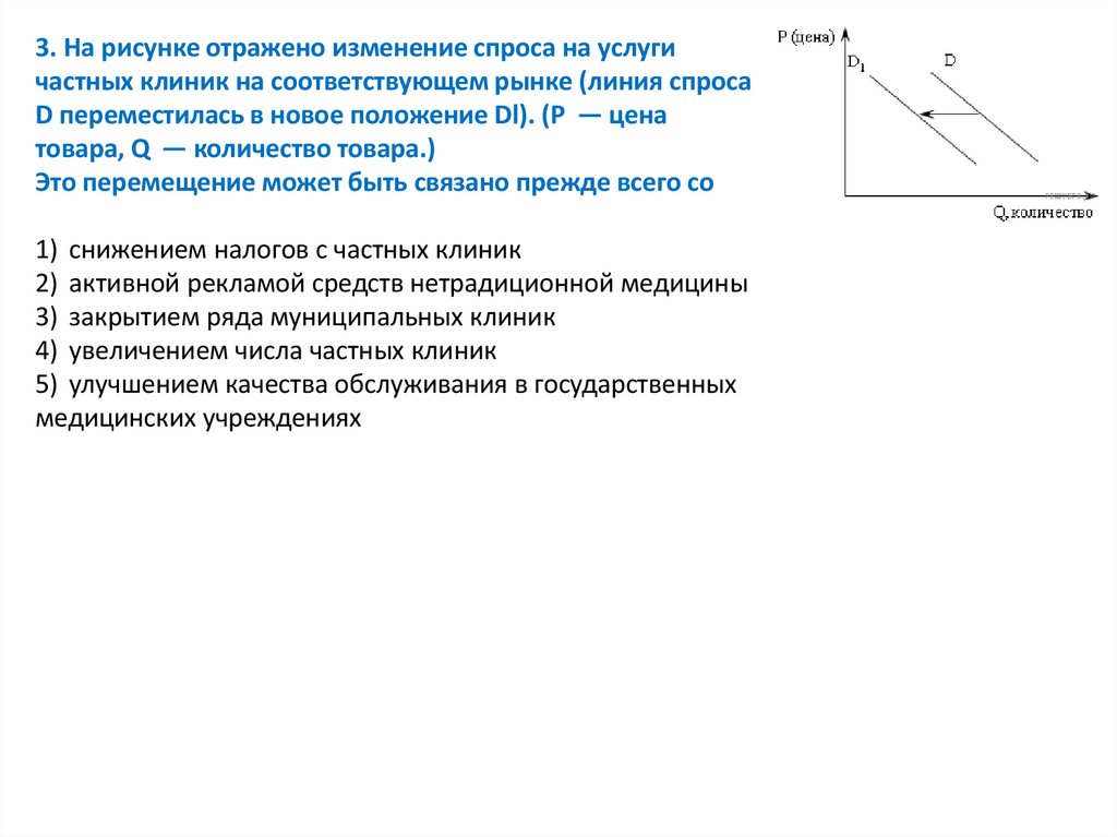 3. На рисунке отражено изменение спроса на услугичастных клиник на соответствующем рынке (линия спроса
