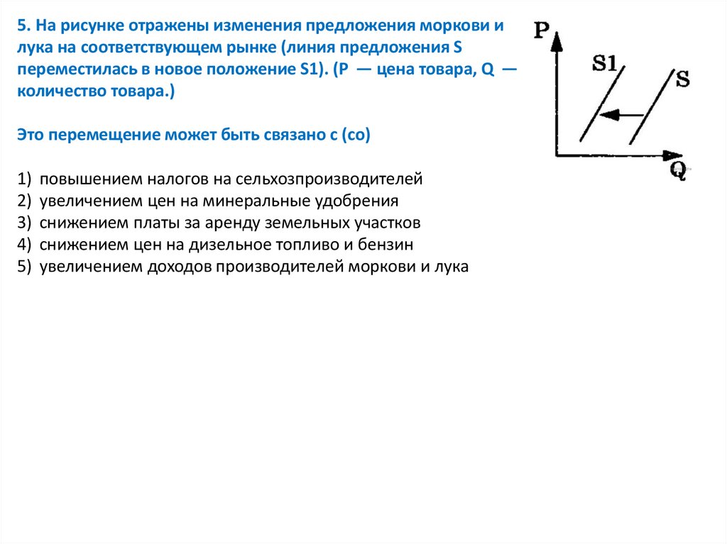 5. На рисунке отражены изменения предложения моркови илука на соответствующем рынке (линия предложения S