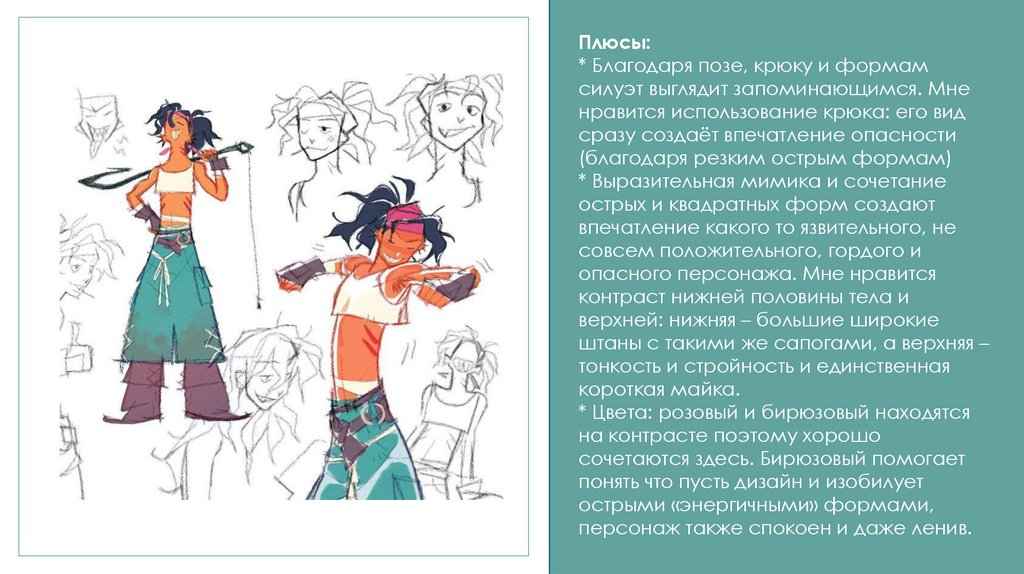 линии, одежду, выражение лица. каждая деталь в дизайне должна работать на