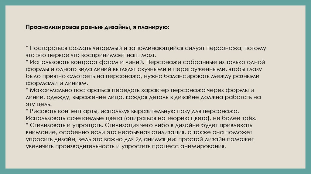 Проанализировав разные дизайны, я планирую:* Постараться создать читаемый и запоминающийся силуэт персонажа, потому