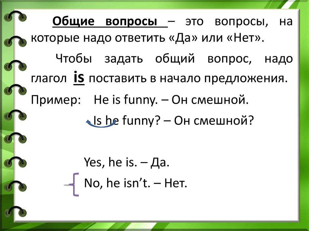 Общие вопросы – это вопросы, накоторые надо ответить «Да» или «Нет».