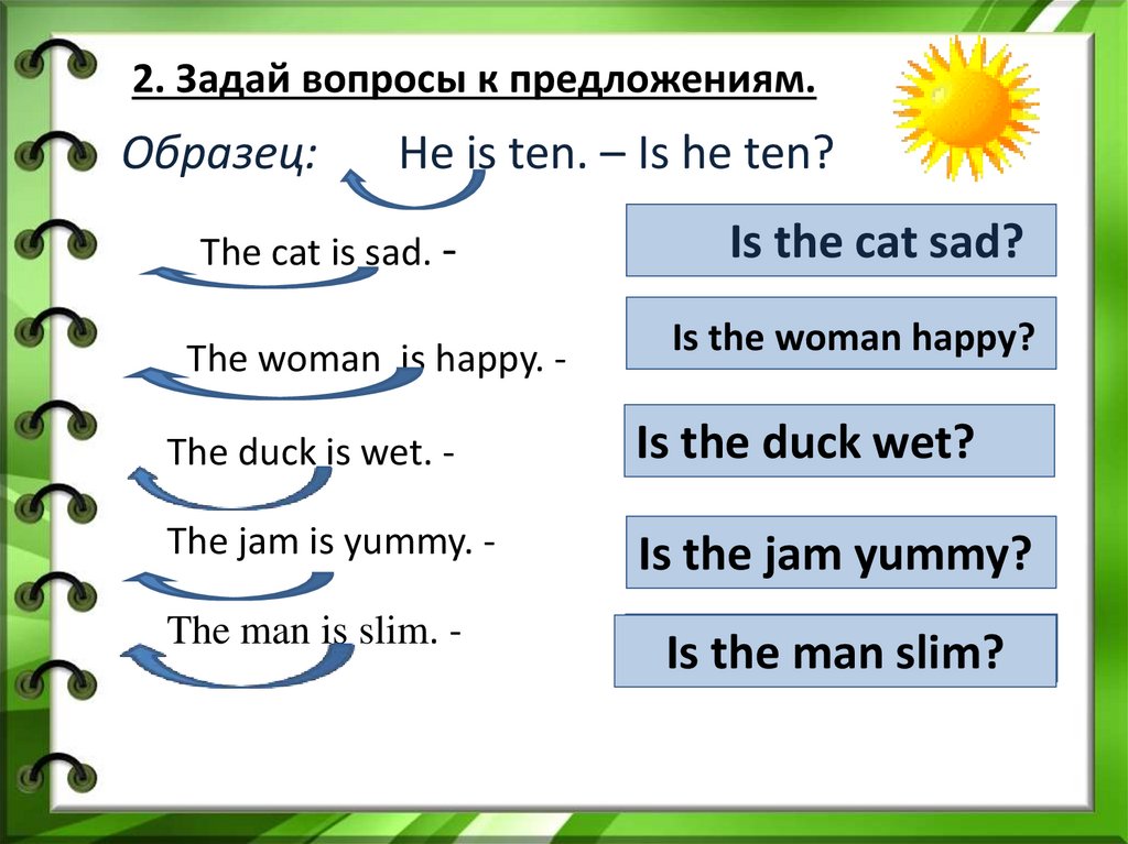 2. Задай вопросы к предложениям.Образец: