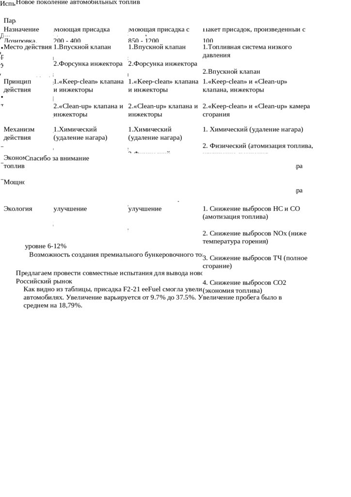 Как видно из таблицы, присадка F2-21 eeFuel смогла увеличить
